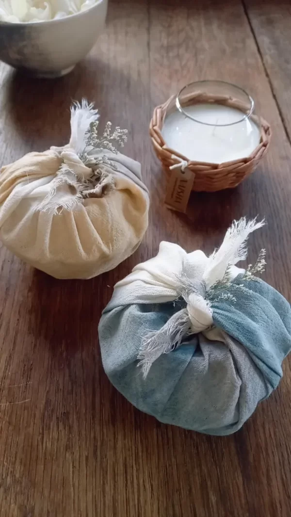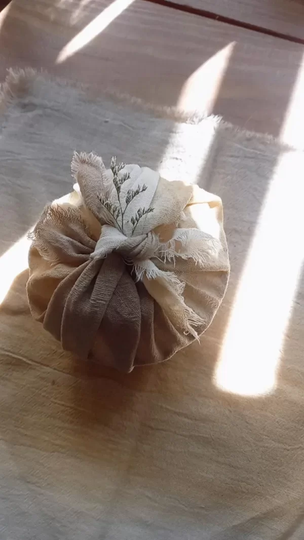 Incluye envoltorio de tela teñida con tinte natural que luego se puede usar de servilleta o toallita!